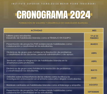 El Departamento de Bienestar Institucional se complace en anunciar su innovador y completo cronograma anual de formación de valores y desarrollo de habilidades blandas, diseñado para fortalecer la integridad, ética y competencias sociales de la comunidad institucional.